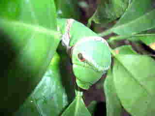 蜜柑の木の葉にアゲハ蝶の幼虫がいました