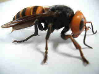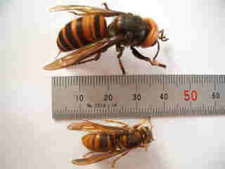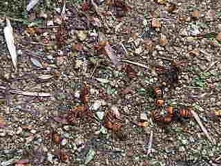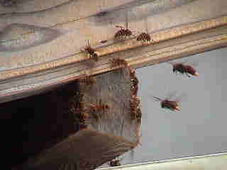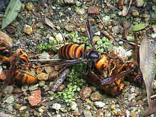 10月某日 軒下でスズメバチがアシナガバチを襲っていました。