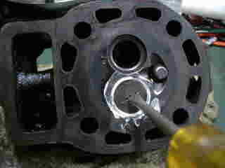 それを、写真右のようにバルブの形状に合わせて加工し、これを使ってヘッドを削りました。